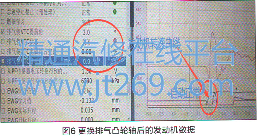 更换完排气凸轮轴后,故障车仪表台上的发动机故障灯消失;用本田专用检测仪HDS检查,发动机系统正常,且无任何故障码;查看发动机启动数据(图6),正常。上路试车,一切正常,该车故障被彻底排除。