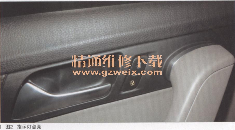 正常车辆,用该按钮锁车后,开关上会亮起黄色的锁止指示灯,如图2所示。