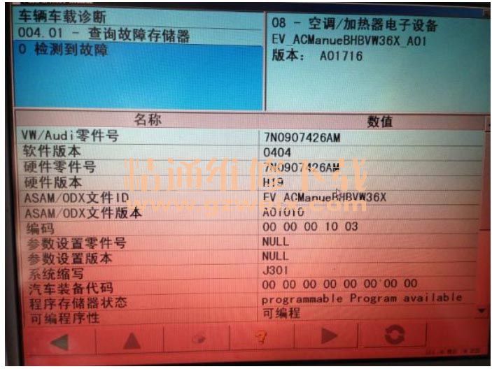 在对车辆系统升级过程中可能屏蔽了室外温度传感器,导致升级完毕之后空调不能立即工作,如长时间行驶自适应室外温度传感器,或直接对室外温度传感器进行元件测试,故障即可排除,针对该故障出现的车辆还有全新迈腾 1.4TSI。