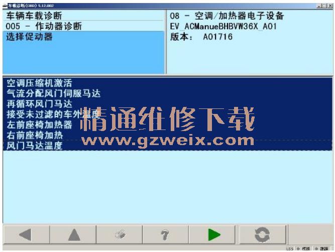 3、 车辆检查未发现异常现象,对空调系统进行诊断 08-005(元件测试);