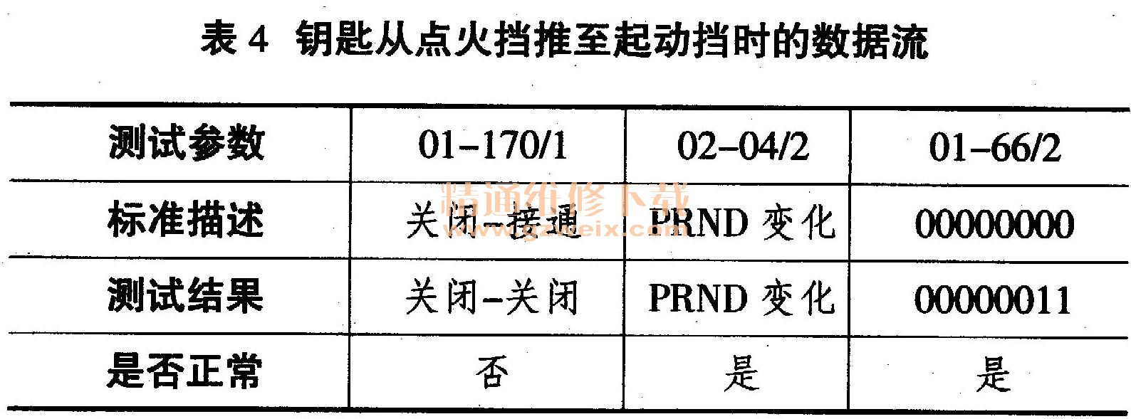 用故障诊断仪读取钥匙从点火挡推至启动挡时的