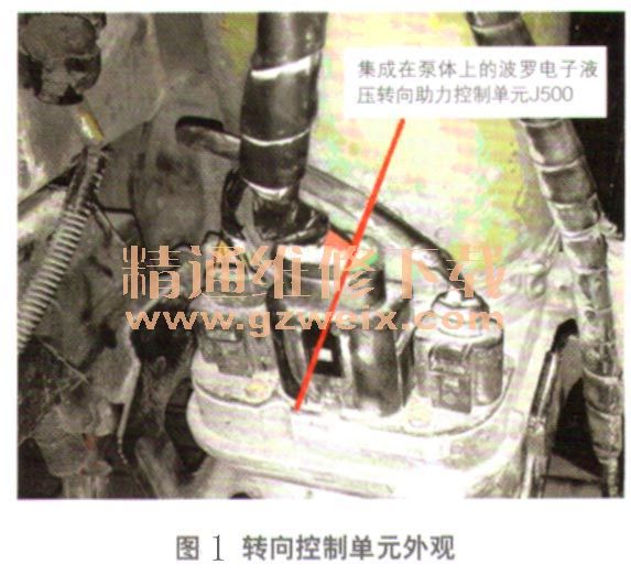 故障排除:因此更换集成转向控制单元J500的助力油泵(图1),写入编码140后,转向辅助指示灯K92熄灭,故障排除。