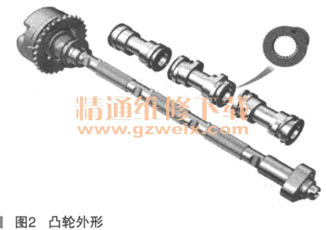 凸轮轴的结构:两个进气凸轮轴都有花键,凸轮块就装在花键上。