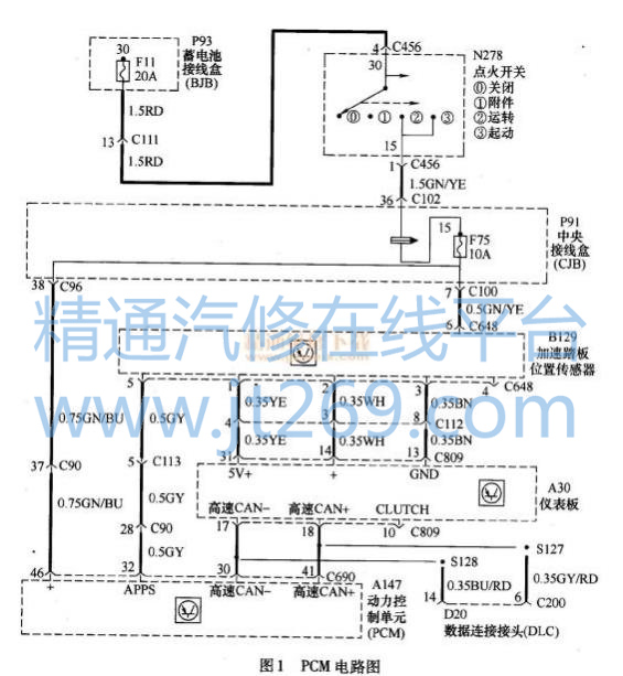 故障现象:一辆行驶里程约 15 万 km 的 2008 年长安福特福克斯 1. 6L 手动档轿车,该车因为碰撞事故进厂修理车身,修好后使用专用故障诊断仪 IDS 无法与动力系统控制单元 PCM进行通信。