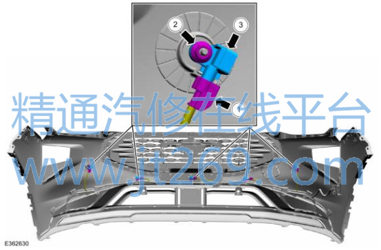 通过维修手册找到前保险杠内的 5 个行人保护感知器位置如下。