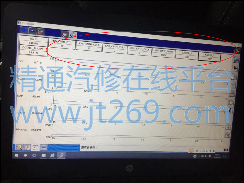 数据流发现 1.2 缸的爆震数值达到 10,3.4缸的爆震次数达到 12 次。