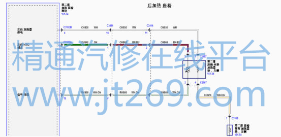 由于加热开关指示灯都能正常点亮,说明系统线路基本正常。然后更换加热模块测试, 右边座椅加热还是不行。于是查看线路图,