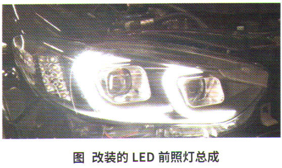 怀疑检查线路过程中存在遗漏,重新检测,未发现异常。此时,考虑到会不会存在外加装部件干扰引起故障。与用户沟通得知,该车改装了LED前照灯(图1)。断开两侧前照灯插接器,试车故障依旧,此时维修陷入了迷茫。