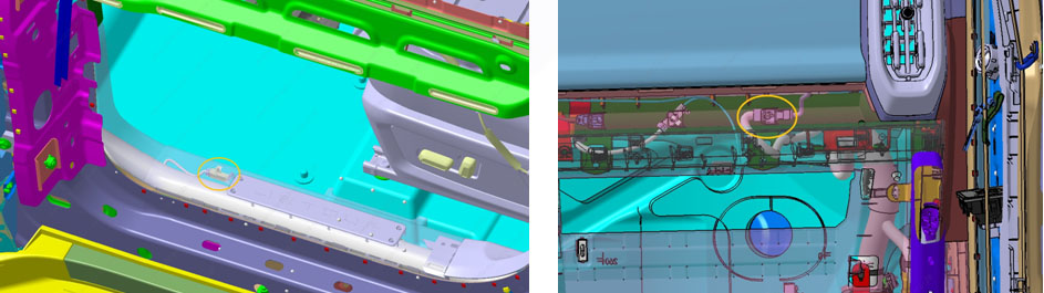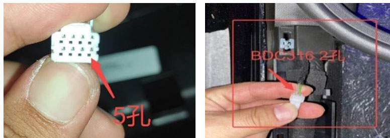 3、拆除副驾手套箱,找到氛围灯控制器插头(图2) 4、使用万用表通断档,测量氛围灯模块插接件5号针脚(线束为紫色 图3)至主驾门槛灯的2号针 脚(线束为灰色 图4),确认是否为导通状态。