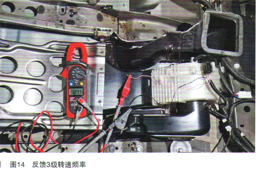 数据流显示的反馈转速频率(参照之前主动测试图5~图10)与万用表所测得频率几乎一致。