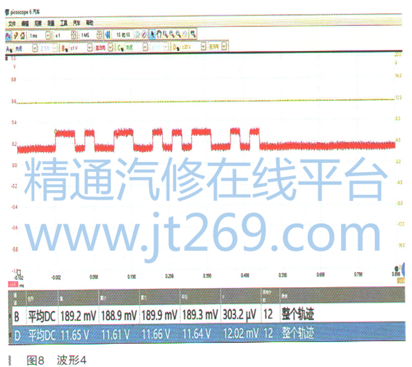 ABS控制模块应能检测到0.15-0.3V的载波信号,如图9所示。