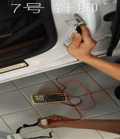 1、观察左前门开关,发现四门升降开关背景灯不亮,怀疑供电问题,测量左前升降机开关接插件T05-19号针脚有12V常电,测量14号针脚IG1电,有12VI共电压,测量接地正常;