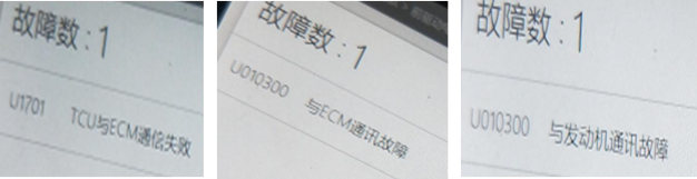 2、用 VDS 扫描系统发现无法扫描到 ECM 网系统。查找网路拓扑图发现 ECM 网终端电阻分别在后驱动电机控制器和发动机 ECM 内。首先尝试断开发动机 ECM 插接件。断开后仪表 P 档灯停止闪烁,再用 VDS 扫描车辆系统可以扫描到 ECM 网,系统报多个故障:电池管理器报U010300 与发动机通讯故障;前驱动电机控制器报 U010300 与 ECM 通讯故障;;变速箱系统报 U1701TCU 与 ECM 通讯失败。