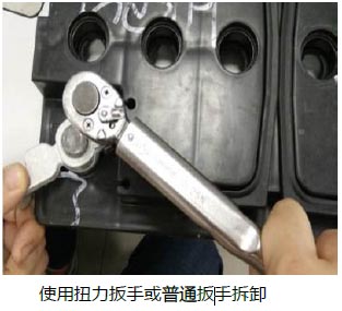 螺母安装过程中,扳手需与负极接头螺栓垂直,安装力矩为6±1N•m,如作业过程中歪斜会造成螺栓卡死现象。