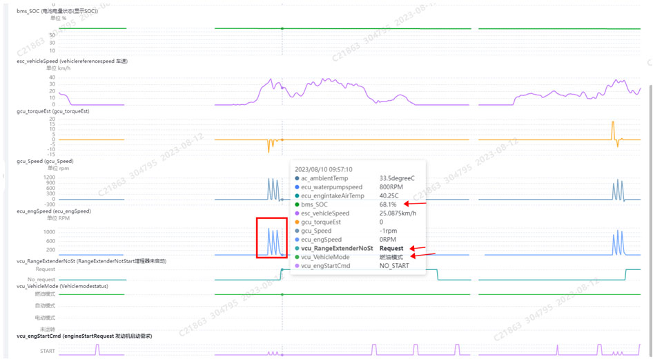 2、通过VHR数据看车辆增程器确有启动失败的情况,但原因需要进一步排查分析;