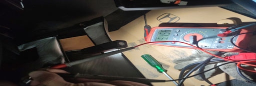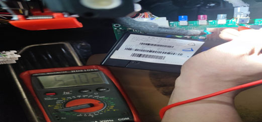 6.拆开TBOX模块,找到PCB电路板上USB接口的焊接端子,直接在该处测量5V电压,在晃动插接器时电压恒定,而此时观察大屏4G信号塔依旧会出现打叉并再次恢复的情况