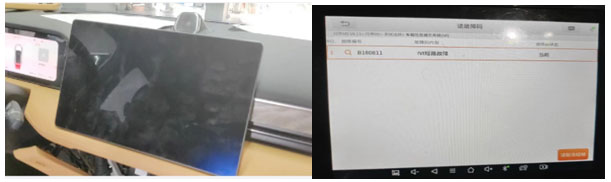 6.ABA验证,将试驾车(B)主机拆下,装在用户车(A)上测试显示屏正常点亮,读取故障B180811(IVI短路故障)自动消除,A车装上B车故障复现,故障码复现,故障随件转移。确认IVI主机本体故障。