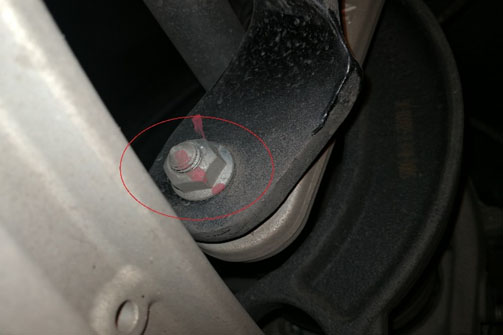 故障点:右侧稳定杆与悬挂连接螺栓松动,力矩不足(见下图)