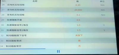 1、路试测试发现车辆电门踩到底车辆最高时速只能到达30km/h,诊断仪读取故障信息,发现VCU报加速踏板一致性故障故障。