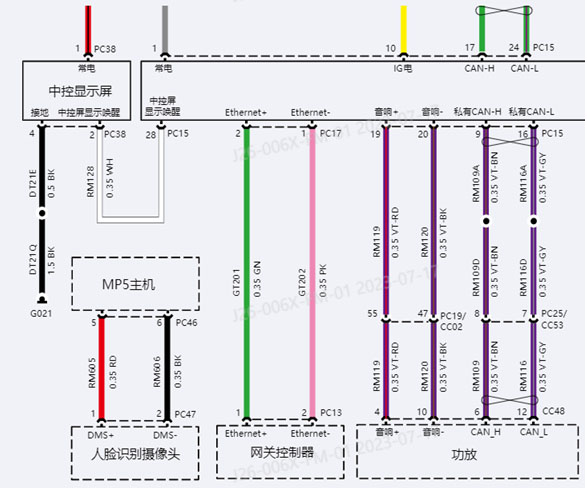 ③、检查人脸识别摄像头供电正常,用手机摄像头对准人脸识别摄像头拍照时,手机屏幕没有红点闪烁(正常情况会有红点闪烁)。通过大屏设置进入维修模式检查DMS人脸识别摄像头显示异常。由此基本判断为人脸识别摄像头本身问题,替换人脸识别摄像头后问题解决。
