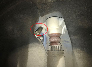 6.检查左侧减震螺栓,发现减震螺栓松动,基本本确认问题为减震螺栓松动造成异响;