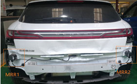 4.拆卸左后保险杠,检查左后中距离雷达位置状态,(安装位置见下图)