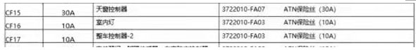 2、检查驾驶室保险盒发现CF16保险丝烧蚀,换新保险丝插上瞬间烧蚀查看线路图CF16为室内灯保险;