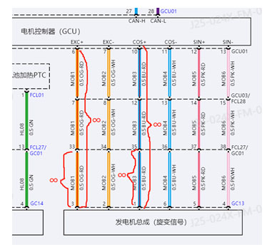 4.确定故障,发动机总成旋变信号线束断路,更换发动机线束。