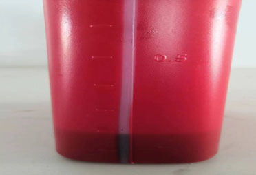6:返回用户中心后,拆卸发电机放油螺栓,测量发电机内部润滑油油量,只有0.2L,正常加注量应为1.1L,以此可以判定该故障为发电机润滑油油量过低引起的发电机散热不良,导致发电机温度偏高报警,检查确定发电机周围无漏油现
