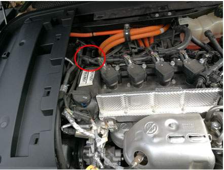 3.打开前舱盖,拆解发动机装饰盖板,找到进气VVT阀的位置;