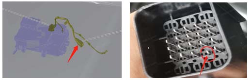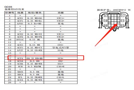 3.排查发电机到GCU的线束,在排查过程中发现GCU02线束第17脚退针,根据原理图发现17脚为正弦脚。判定因线束17推针导致正弦旋变电阻超范围,导致增程器启动异常,报 P3CBF00位置信号检测回路故障。