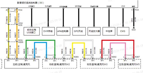 4.参照电路图,整车配置4个麦克,呈串联状态,并最终由主驾麦克输入IVI
