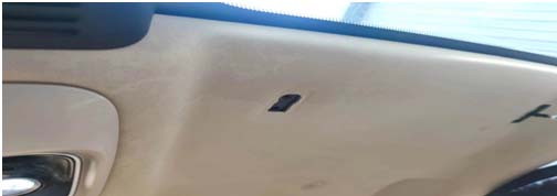 7. 问题总结:“凝固物”将麦克采音孔覆盖,降低了麦克灵敏度。观察主驾麦克风周边饰板,发现有部分区域存在被某种液体浸染的痕迹,但用户否认曾发生过类似行为。