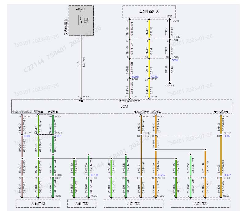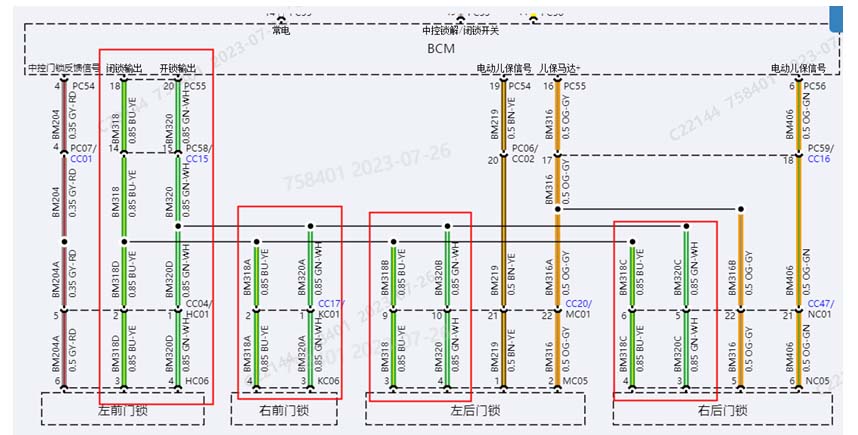 BCM到车门锁线束问题;3、锁块故障。