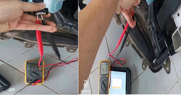 3.手动操作前雨刮喷水开关,用万用表检查无电压输出,尝试用诊断仪在