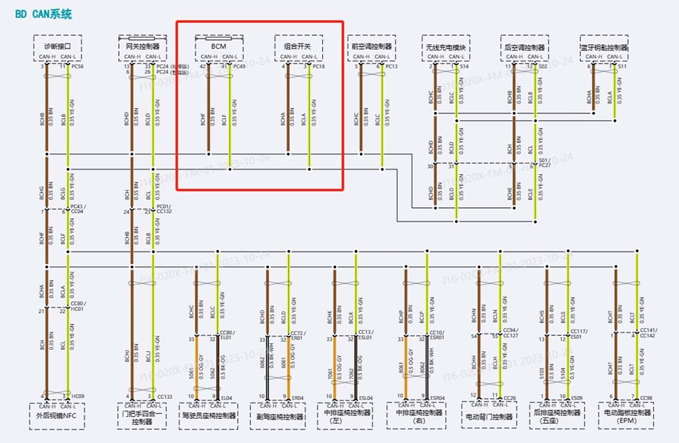 BCM到喷水电机正常,组合开关输出信号正常,现在可以判断出问题出在组合开关到