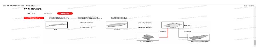 BCM ②PE天线 ③遥控钥匙 ④门把手、门锁电机。