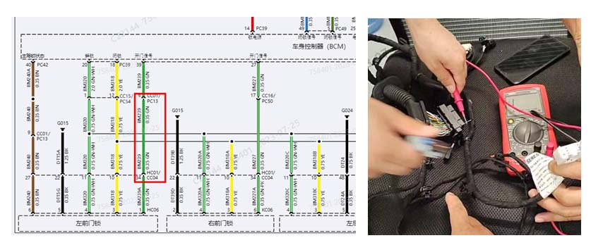 故障现象:解锁打开主驾驶门后仪表与大屏不点亮,坐上主驾驶座椅后发现仪表不显示主驾驶车门状态