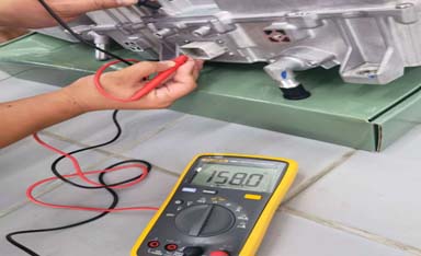 蓄电池负极,测量PT CAN对CAN H和CAN L之间无互短,发现CAN L对地电阻为150欧姆,拔开GCU插头电阻为1兆欧,到此可以明确GCU内部CAN L对壳体有短路,GCU拆卸后测量CAN L对壳体的确存在短路(如下图)