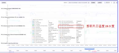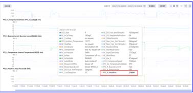 2.通过测量后排出风口温度,温度由冷变热,怀疑是不是后排空调冷热风门电机卡滞再中间位置,用诊断仪动作测试,冷热温度控制面板是可以正常控制,遂与正常车倒换后排空调控制面板测试,故障现象依旧。3、区域技术后台VHR分析:PTC R HEAT 一直加热有功率输出。