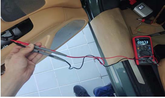 4.测量电动窗主开关插头HJC04的3号和5号端子与接地之间的电阻0.3欧姆, 线路导通正常。