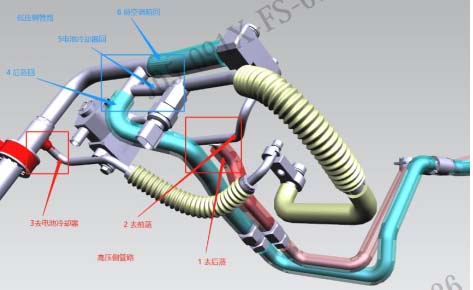 6、 测试 1、 2 高压管路的温度在 20 度左右, 4、 6低压管路的温度在 8 度左右;同时在后部