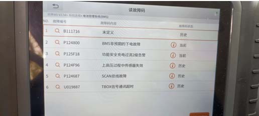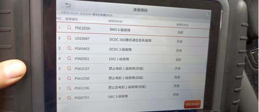 清除故障码后,车辆还是无法恢复正常,点击诊断仪BMS硬件复位,然后再清楚故障码,车辆恢复能上高压了,此时仪表电机故障灯点亮,用诊断仪读取整车故障码,MCURO出现故障码: