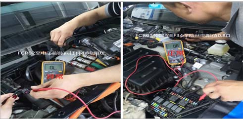 ⑥排查FCR02插件公端、母端分别至前舱保险盒、电子膨胀阀插件通断