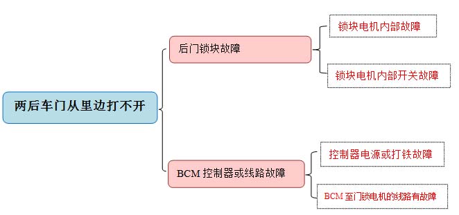 故障复现:根据客户描述,关闭后门从车里边拉拉手两后车门从内部无法打开,与客户描述一致