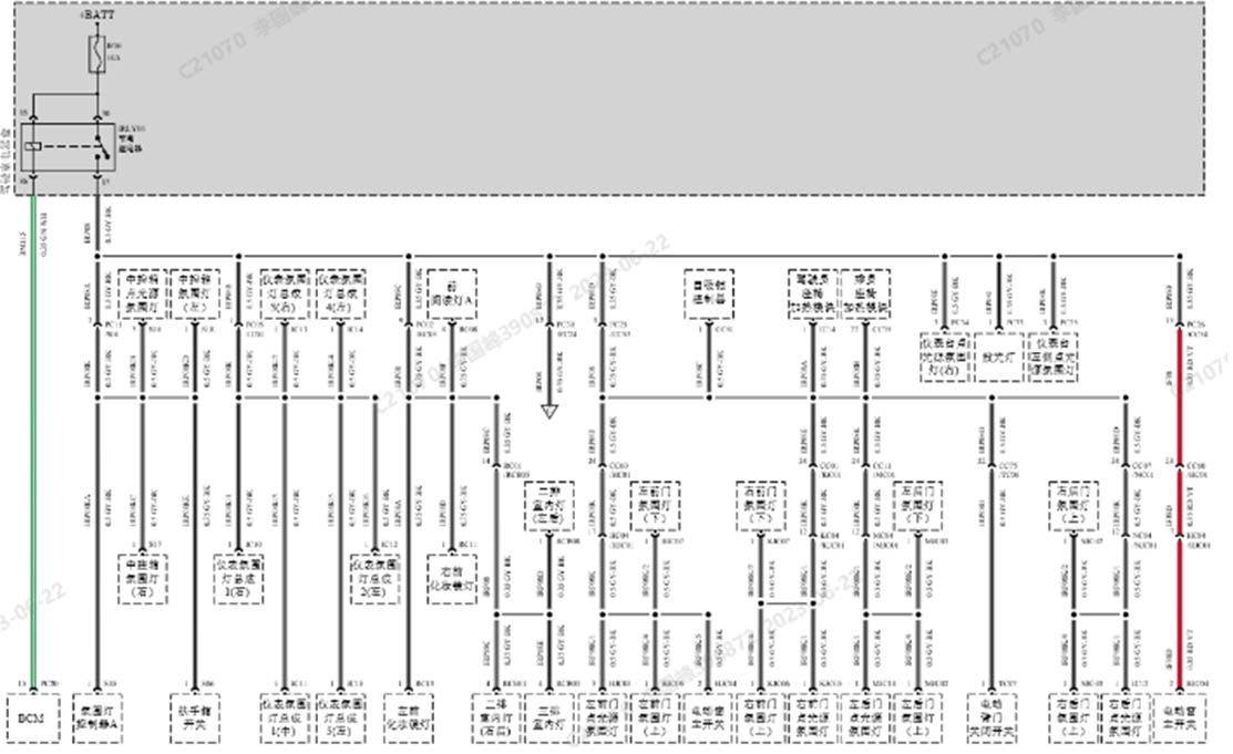 故障现象:主驾玻璃升降开关无法控制四个门玻璃升降,氛围灯无法打开。