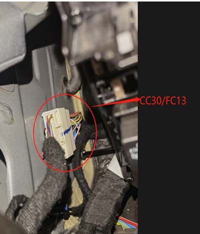 通过上述检查,说明GC01-A2到继电器86脚处有断点或者EMS本身故障导致没有电压输出 ,通过分段测量,先找到CC30/FC13-17(在左A柱下方位置),对相应针脚测量,对地电压为0V,又测量了一下线路通断,线路正常。