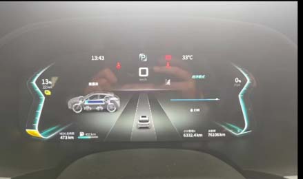 2、进行试车,将驾驶模式调到节能模式,将动力电池电量消耗到20%以下,动力电池电量持续下降。可以听见发动机启动声音。