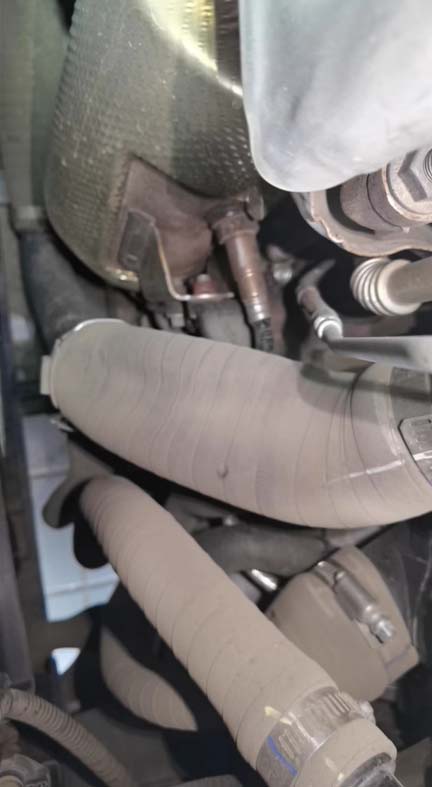 5、打开发动机盖,检查增压管路发现增压管路在增程器启动的情况下被吸扁。拆开空滤发现客户在维修理厂更换过空气滤芯,修理工把手套遗留在空滤上 部,造成吸气 吸入