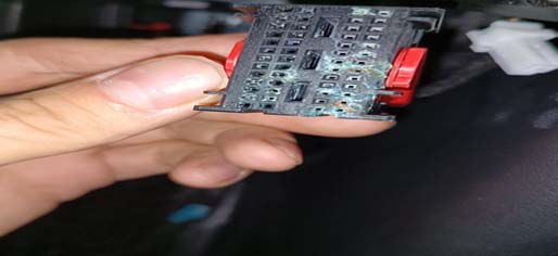 5.进行故障验证分析确定真因,明显的腐蚀说明插头进水,仔细观察客户前档玻璃太阳膜感觉是才贴的,在次询问客户说昨天在外面才贴的膜,在贴膜时防护没有做好导致水流到